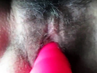 My hairy girl with a vibrator