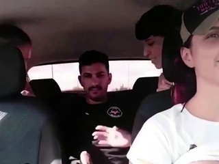 Slutty Latinas crowded car sex while driving