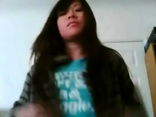 cute asian girl films herself cumming
