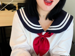 Cute asian teen demonstrate her incredible talents to suck