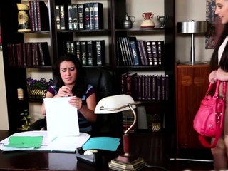 A busty lesbian milf boss ass licking her brunette assistant