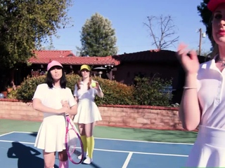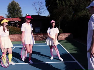 Three small tits teen bffs blowjob and fucked by their coach