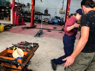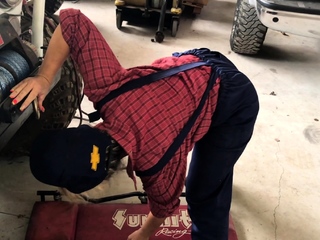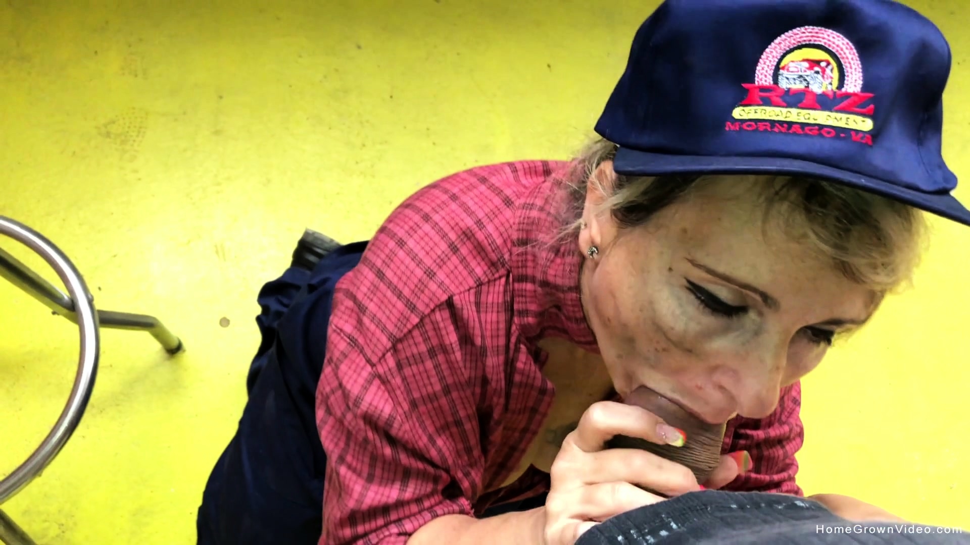 Blonde wife with big tits gets sucks dick in the garage