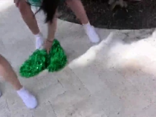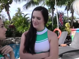 Cock riding cheerleaders poolside in foursome