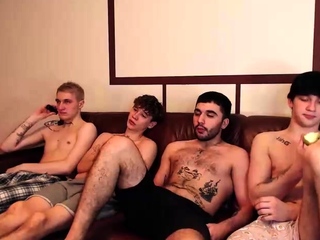 Four twinks enjoy gay group sex party