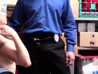 Inked red teen thief using her pussy to avoid jail