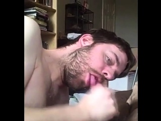 Blowing his buddy in bed and taking the cum load