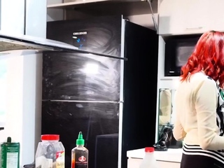 Redhead latina maid polishing a big cock