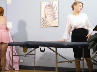 Hairy redhead rimmed by busty blonde during massage