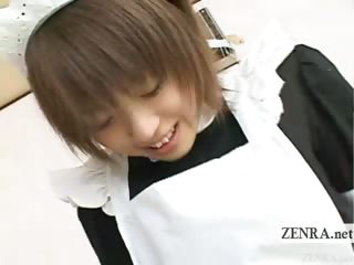 Subtitled POV shy Japanese group maids interview