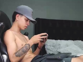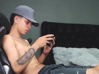 Gay latin stud jerks off his cock until he cums