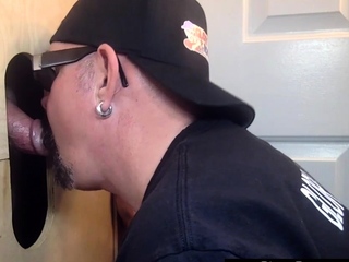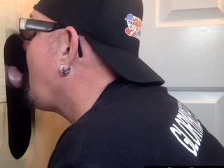 Mature DILF sucking gloryhole pecker