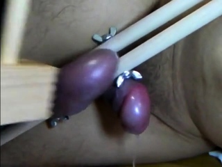 Testicle torture Cumshot very painful ballbusting