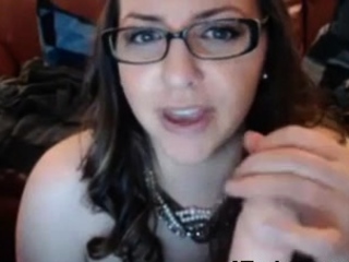 Nerdy Chick with glasses sucking dildo and masturbating