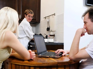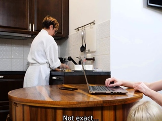 SISPORN. Woman does chores not noticing stepdaughter