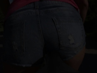Very old mother toying his girlfriend outdoors