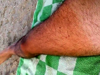 Gay wanks his huge dick and cums at the beach in public