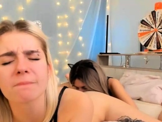 Turned on blonde teen lesbians sticking dildos up their vags