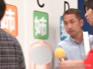 Delicate asian puts condom on cock in a sex contest