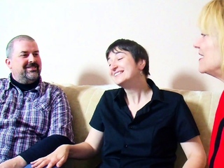 German Couple talk to First Threesome Sex by Big Tits Mature