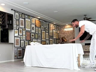 Jasmine ets a special massage from expert masseuse Quinton