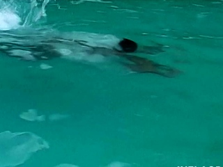 Nasty babe sucking cock at poolside