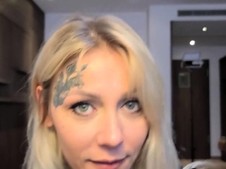 Tattooed babe Nayomi Sharp sucks Sascha's big cock