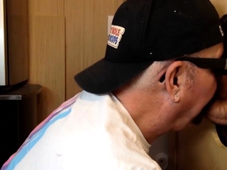 Gray DILF sucking off gloryhole shaft
