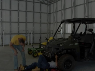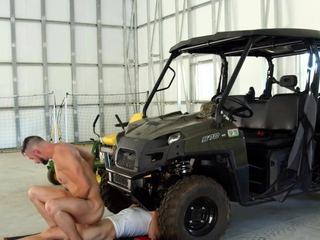 Bottom stud barebacked by mechanic