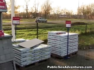 Flashing sexy tits and taking hard dick outdoors
