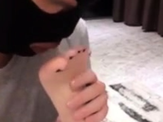 Feet worship.