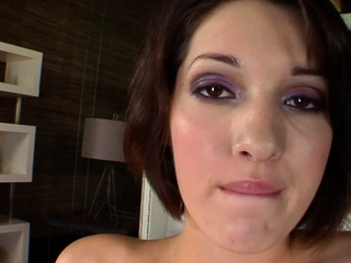 Skinny brunette teen bitch try cum facial casting
