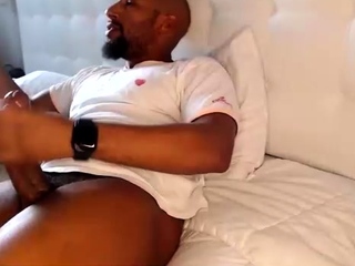 Hot gay hunk stroking huge black meat in solo fun