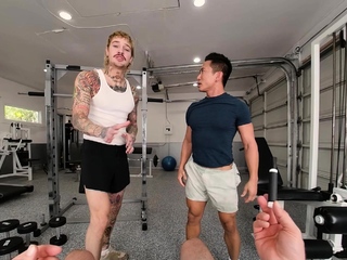VRBGay Bareback sex fantasy in the gym with muscle Jkab Dale