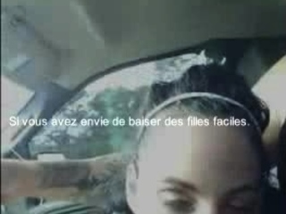 Femme fait une pipe risquee dans la voiture