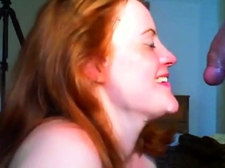 Redhead neighbour sucks a guys cock till happy end