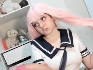 Blonde teen gives handjob and blowjob