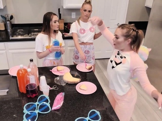 Teen slumber party ends on an asian cock