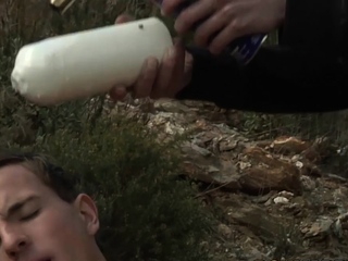 Wax tormented twink dommed and wanked off outdoors