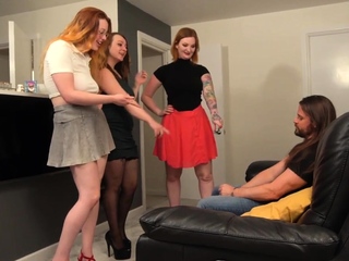 CFNM dom babes suck dudes cock in group