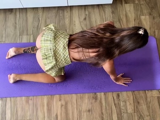 Gorgeous babe goes from yoga to cock riding