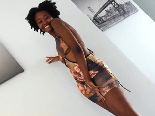 Outgoing busty African girl fake casting