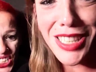 Two MILF sluts fuck stranger in public and share facial live