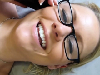 Pretty busty blonde teen babe masturbating