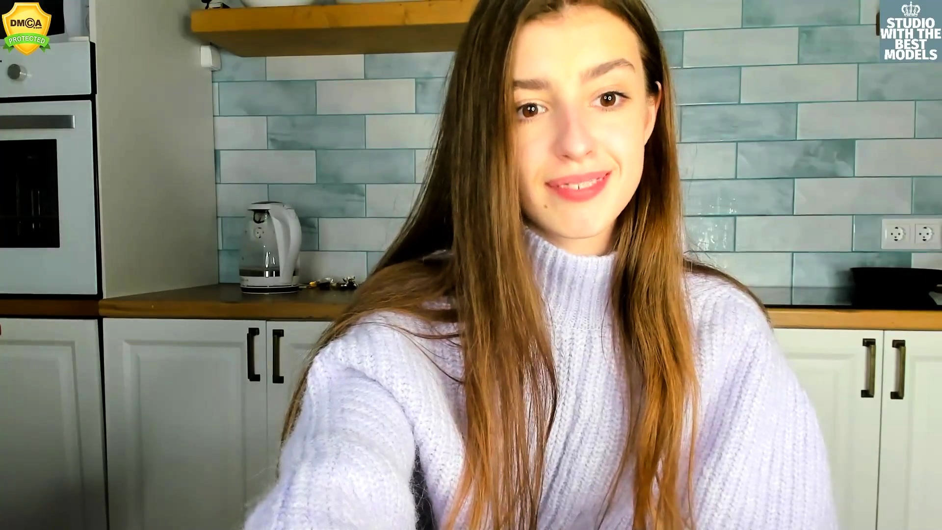 Russian brunette busty camgirl masturbating on webcam