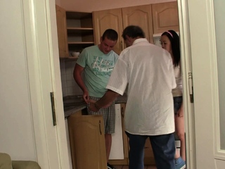 His teen brunette GF riding old dick