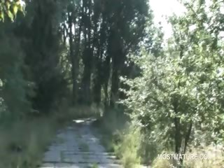 Outdoor 3some with mature babe fucking teen dicks