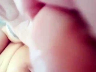 Brunette amateur takes a cumshot in mouth