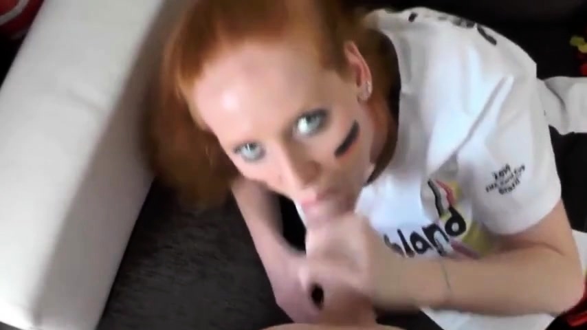 Rothaarige Fette lutscht im WM-Trikot!