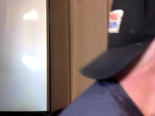 Homemade gloryhole DILF sucks at home